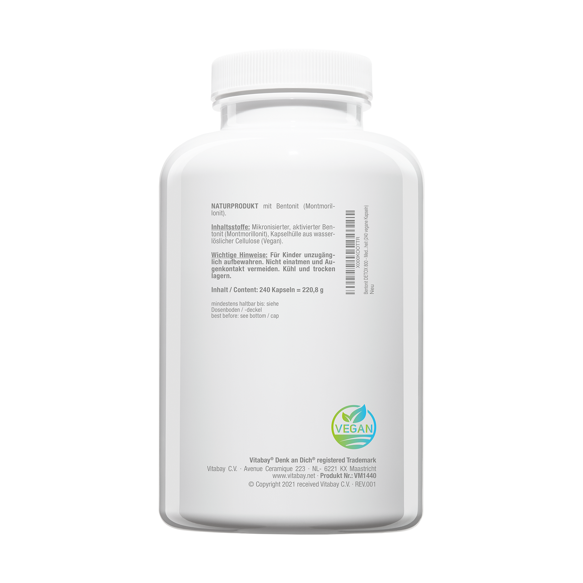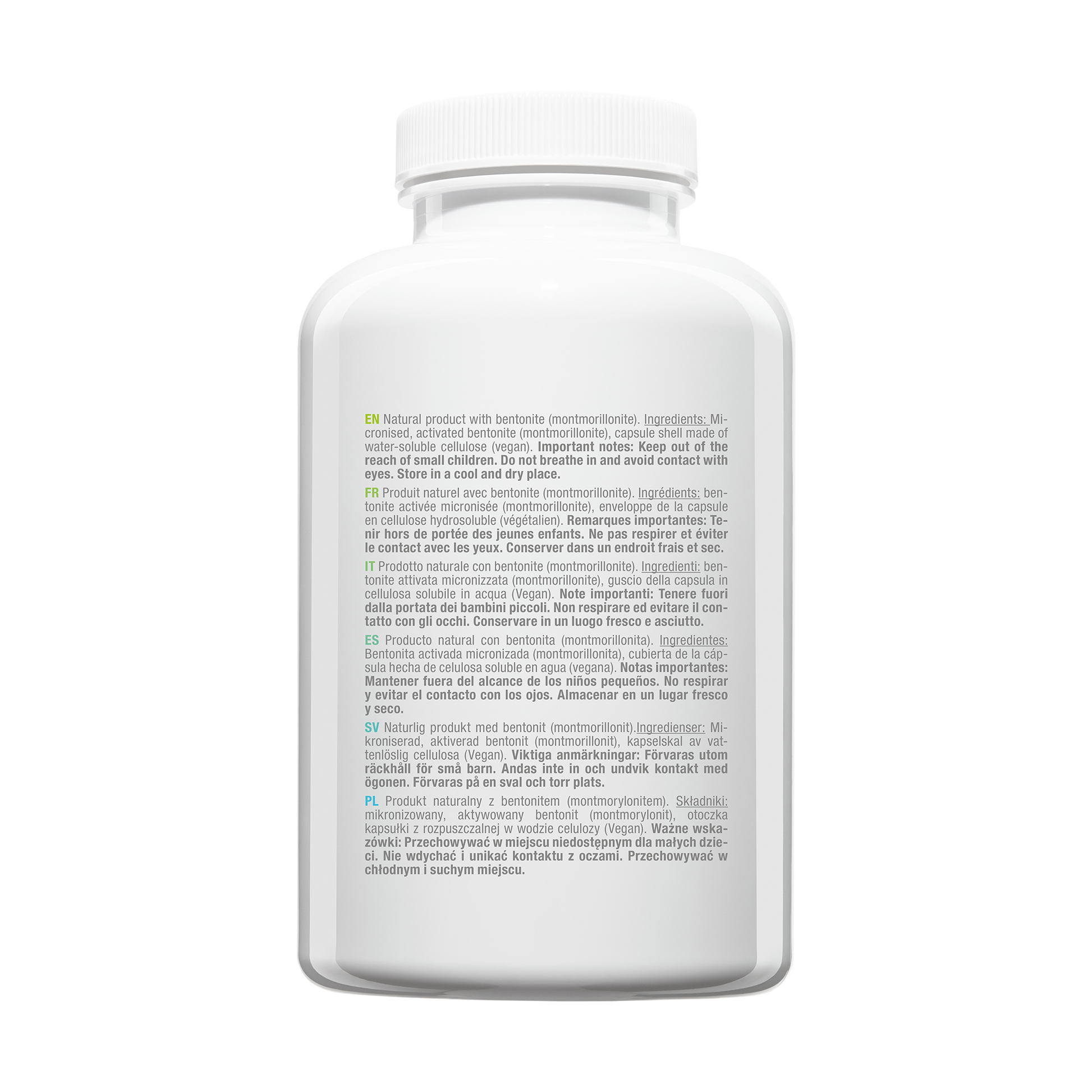 Our bentonite is manufactured from high-quality raw materials in pharmaceutical quality and contains up to 96% montmorillonite for highest purity and effectiveness. Through a special process, it is activated and micronized to unleash its full power. The capsules are free from additives, tested for pollutants, and offer the highest quality with a grain size of 11 µm and vegan cellulose capsule. Our products meet the highest standards and are regularly tested in accredited laboratories.