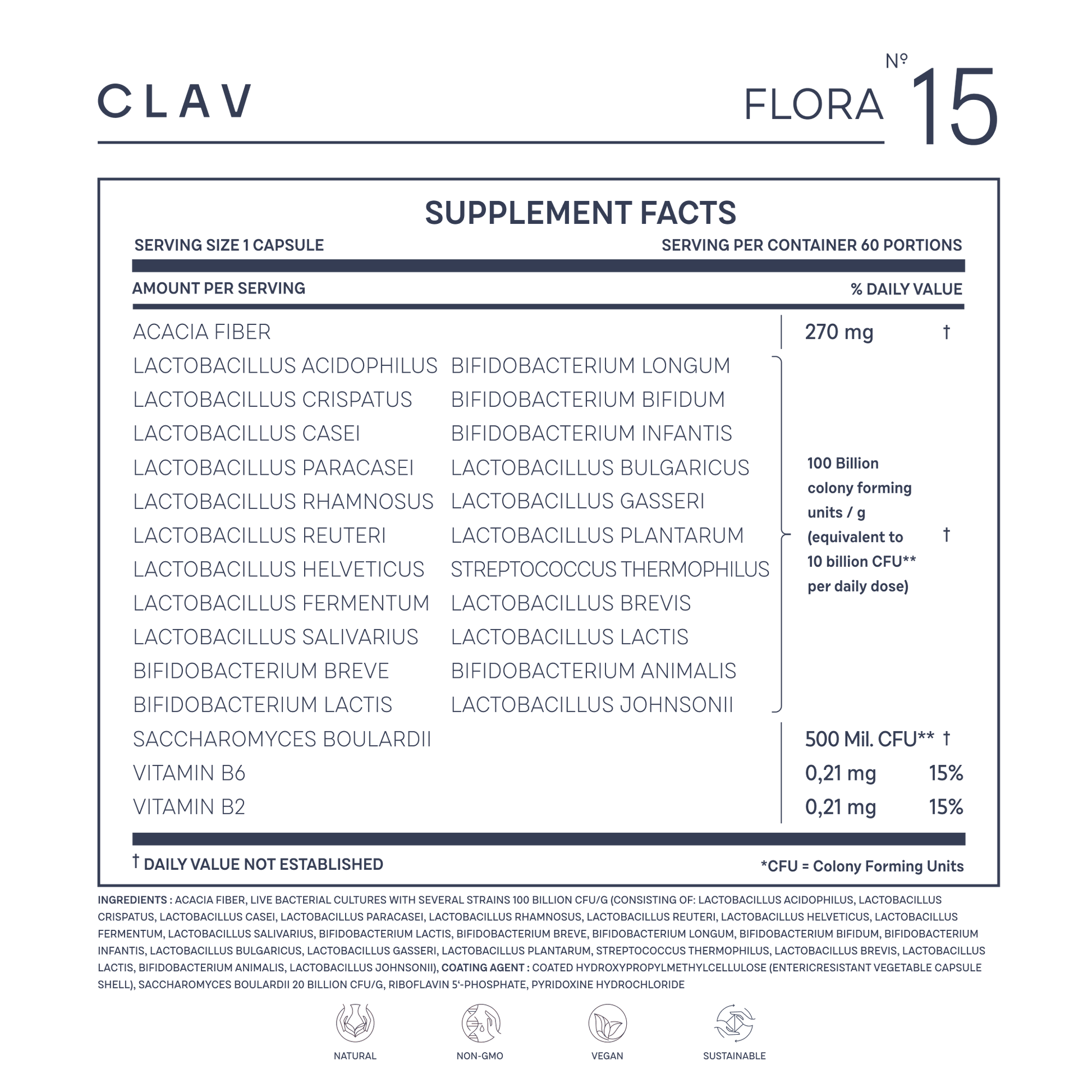 - Contains the most important bifidobacteria and lactobacillus for digestive health