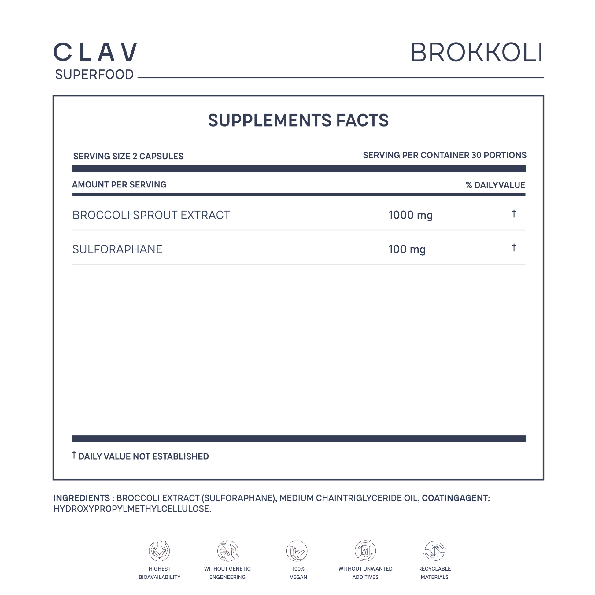- A daily portion of broccoli extract equals 2.5 kg broccoli