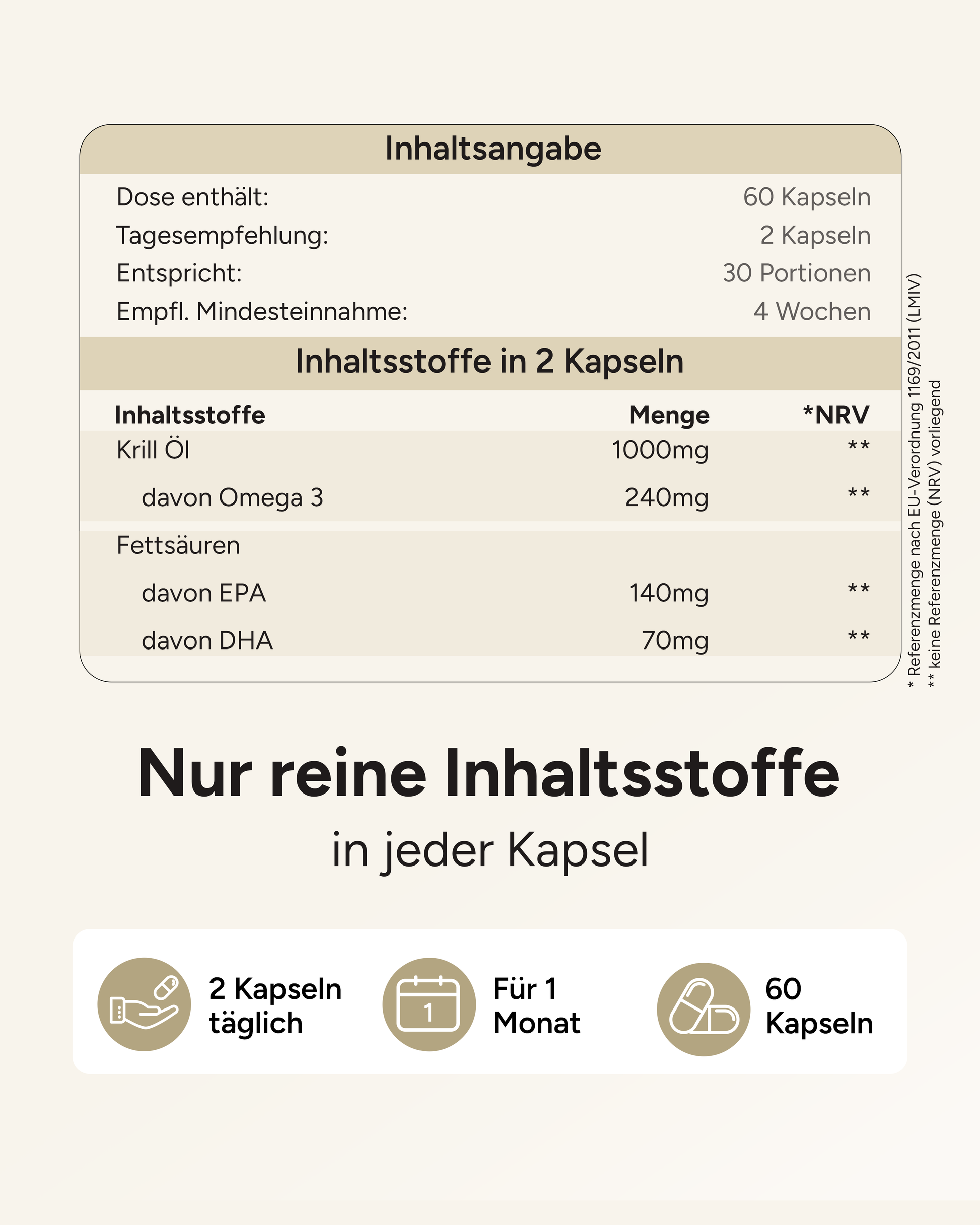 Omega 3 Krill Öl - 140mg EPA & 70mg DHA pro Tag