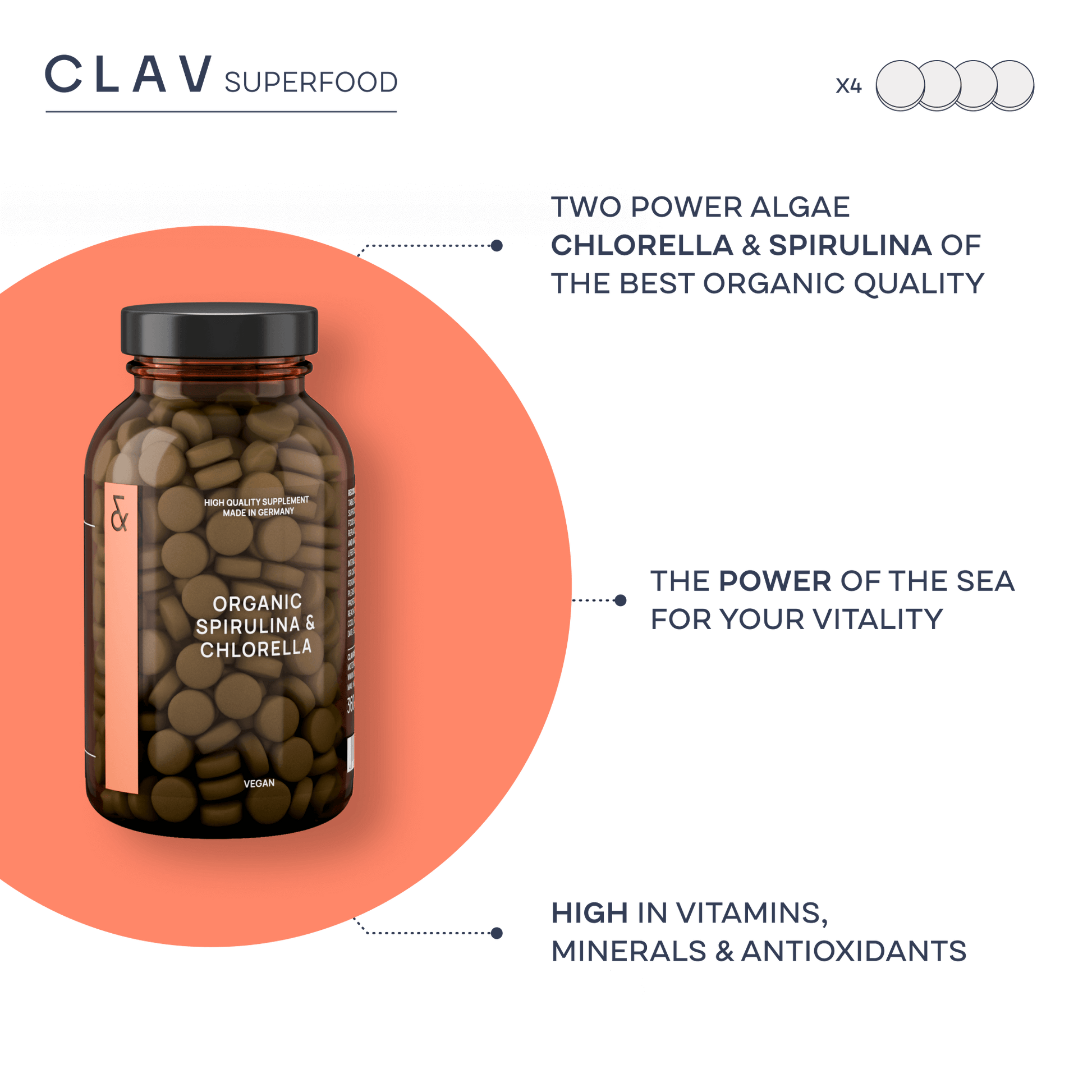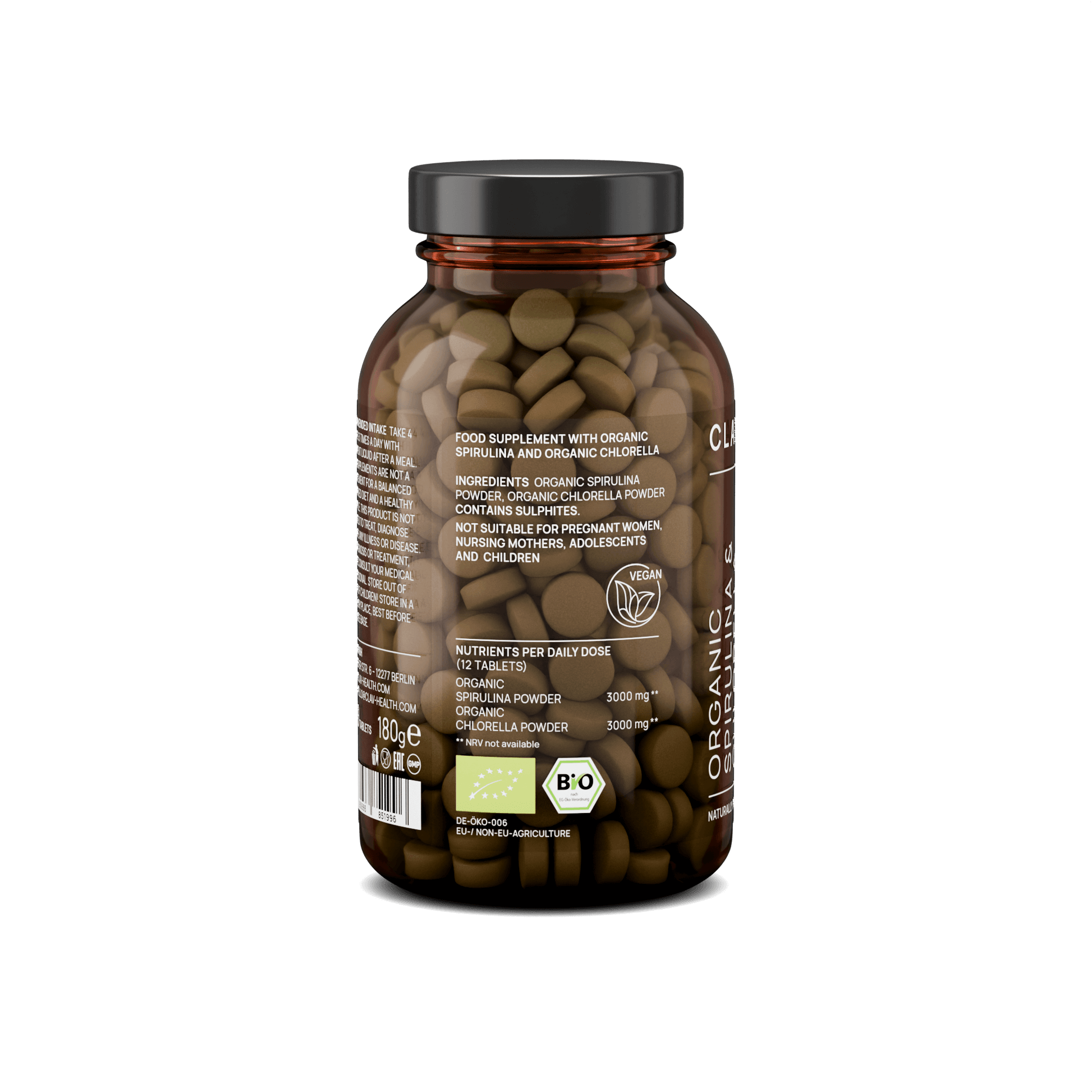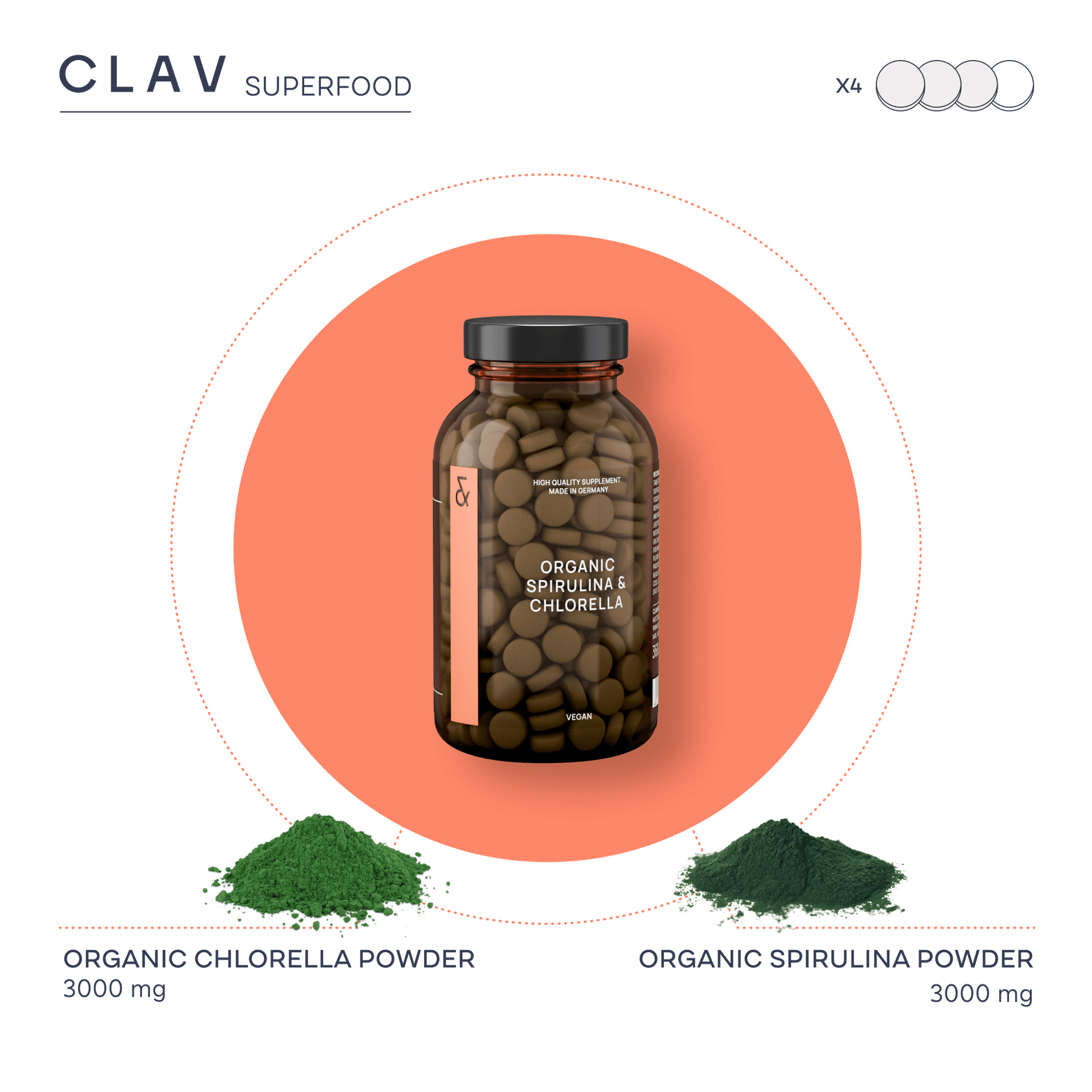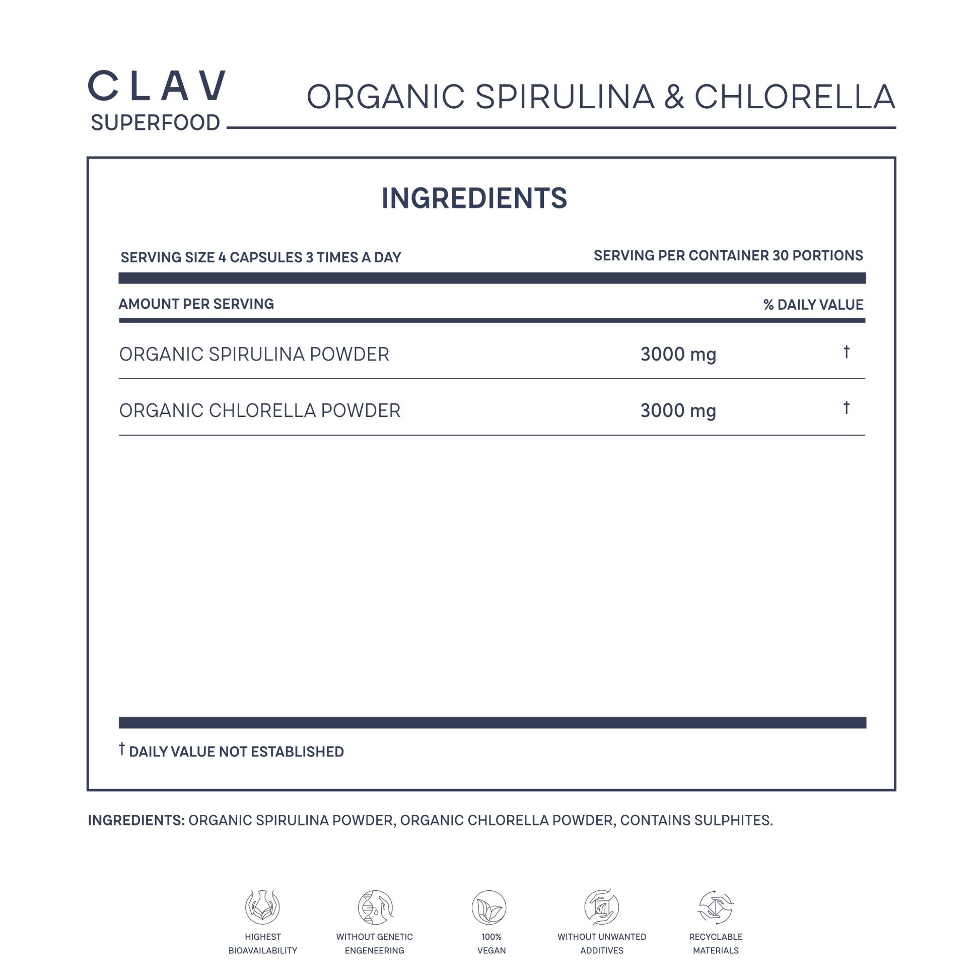 - Highly dosed with 3000mg chlorella & 3000mg spirulina