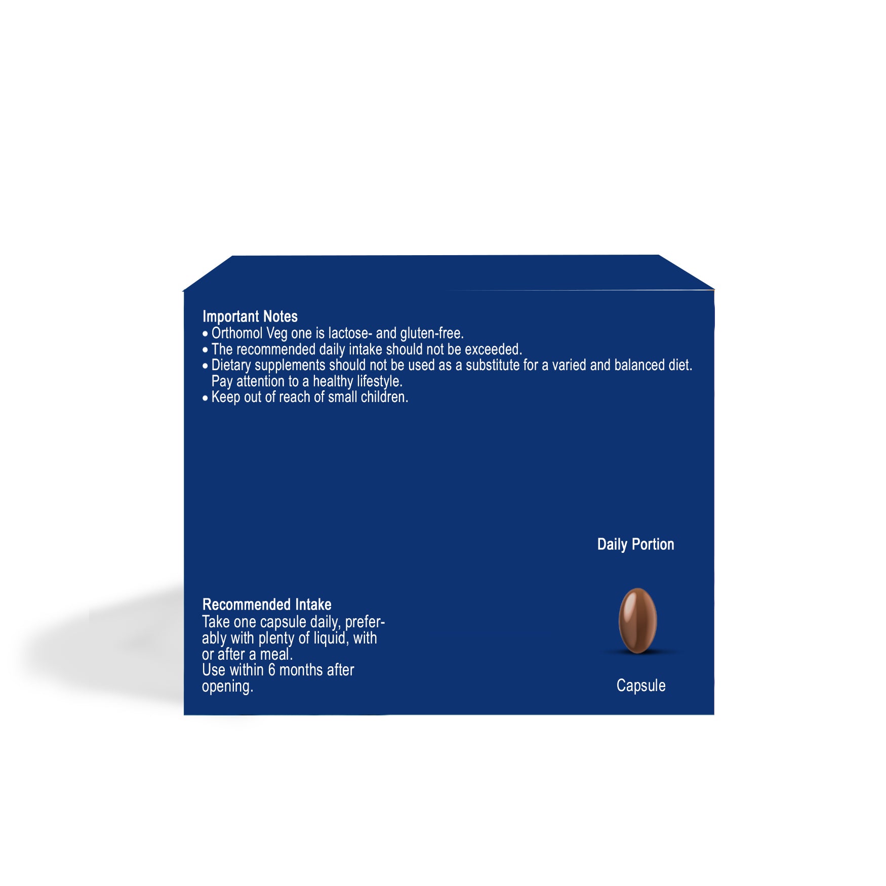 People who only eat plant foods need to know about the critical micronutrients that are sourced primarily from animal foods in order to supply them via alternative sources. Orthomol Veg one is a special micronutrient combination and a targeted food supplement for a vegan or vegetarian diet, with a daily serving of only one capsule.