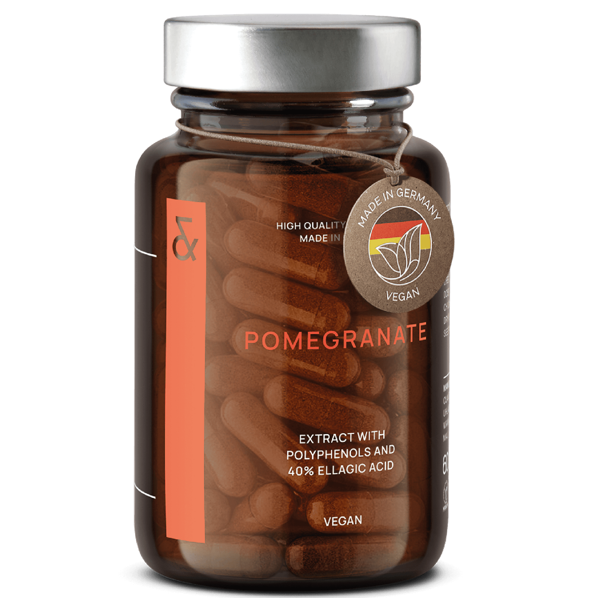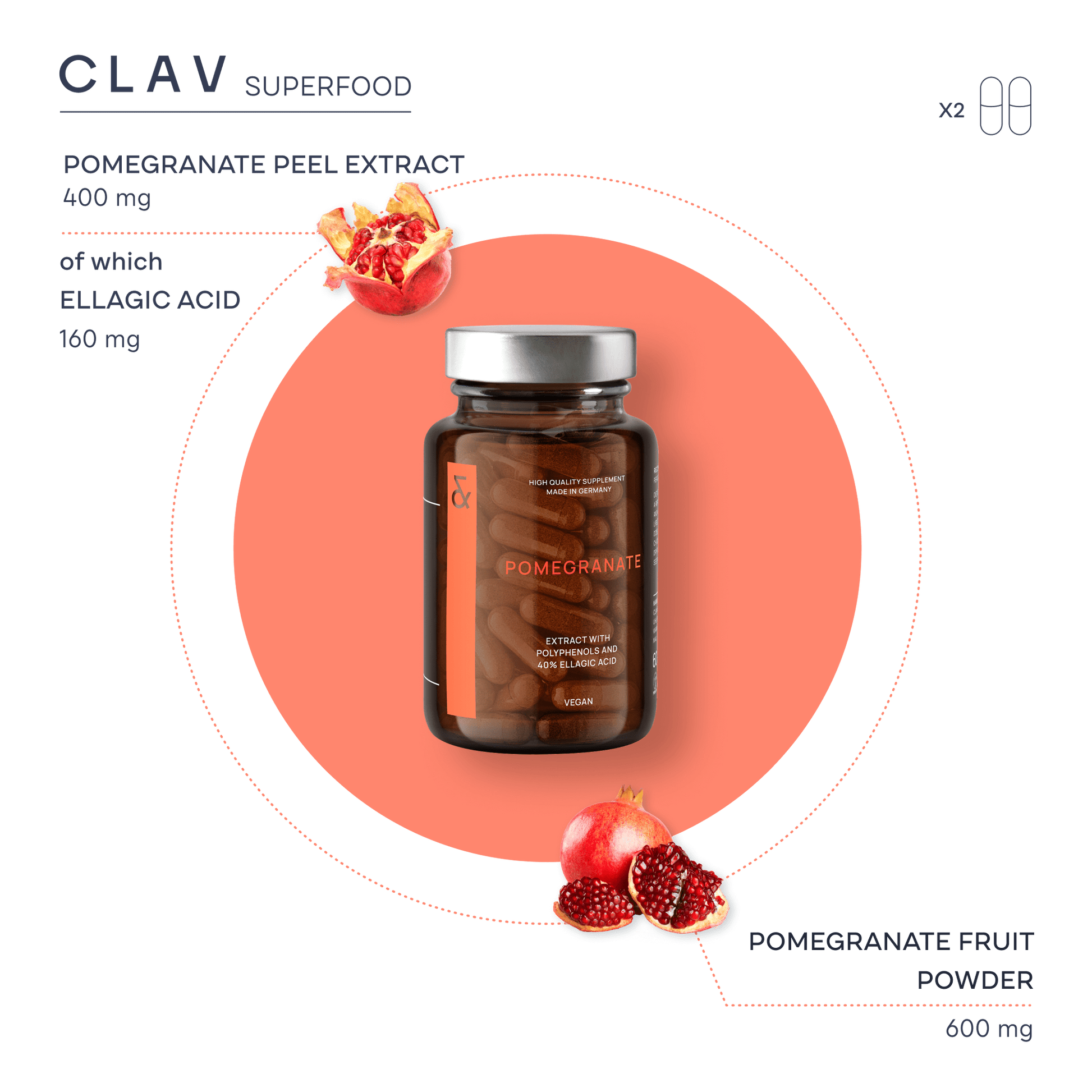 - With 300 mg high-quality pomegranate fruit powder & 200 mg pomegranate peel extract per capsule