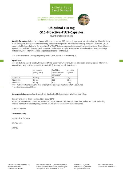 Before the body can utilise the coenzyme Q10, it must be converted into ubiquinol, the bioactive form of the coenzyme. If ubiquinol is taken directly, the conversion process becomes unnecessary. Ubiquinol, activated Q10, is made available immediately to the organism. The "PLUS" in these capsules is the added B-vitamins. Vitamin B1 contributes towards a normal heart function. Both vitamin B1 and vitamin B12 play an important role in benefiting a normal energy metabolism, with vitamin B12 helping to reduce tiredness and fatigue.