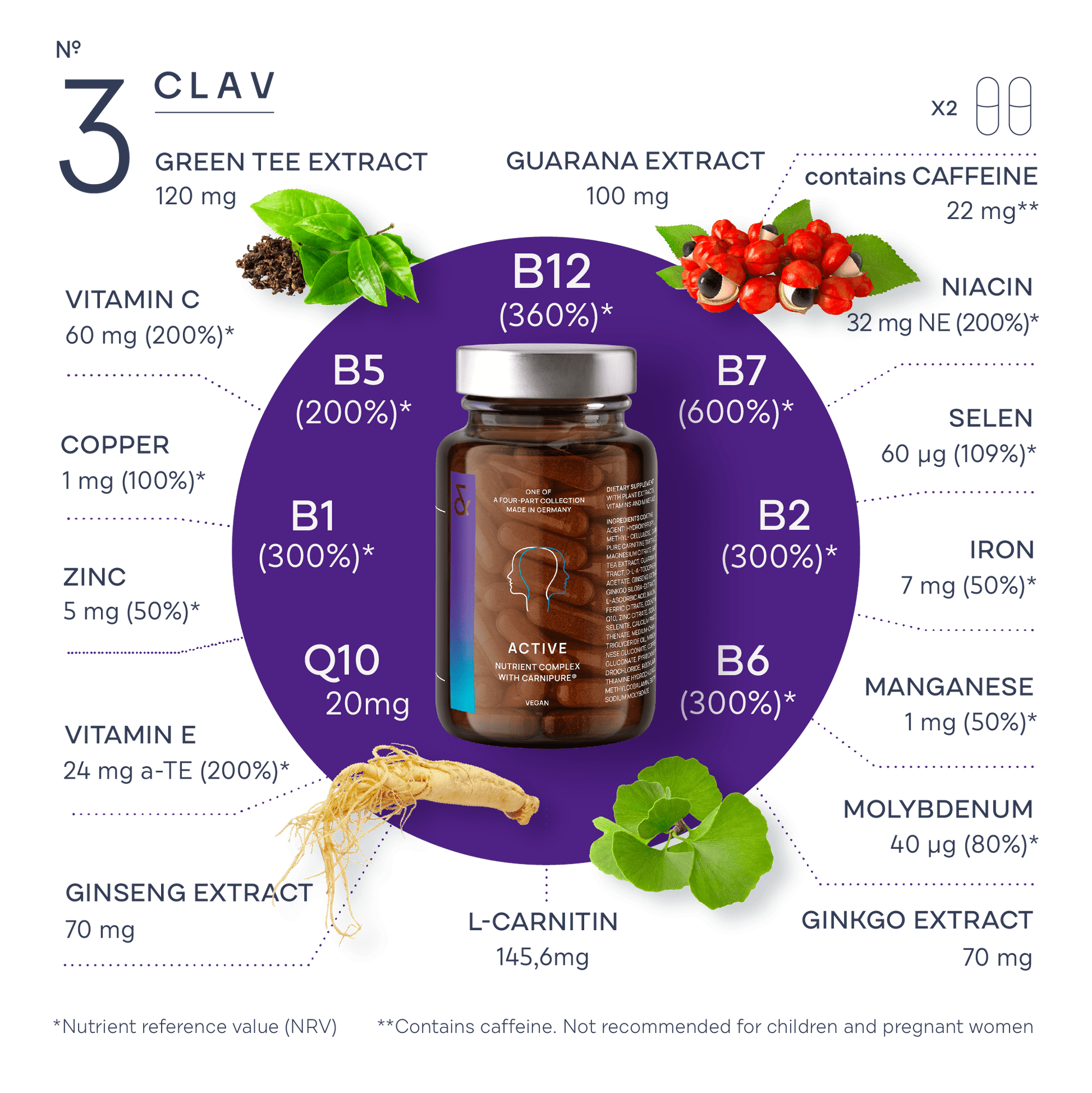 - With valuable extracts from ginkgo, ginseng, guarana and green tea