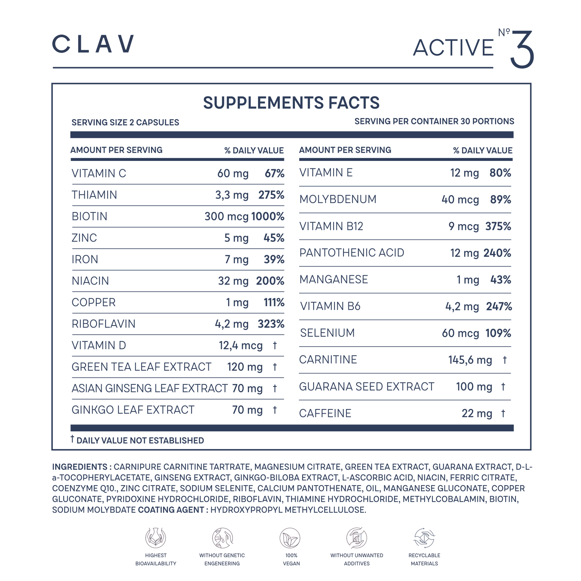 - Covers the daily requirement of important B-vitamins, vitamin C, E, copper & selenium