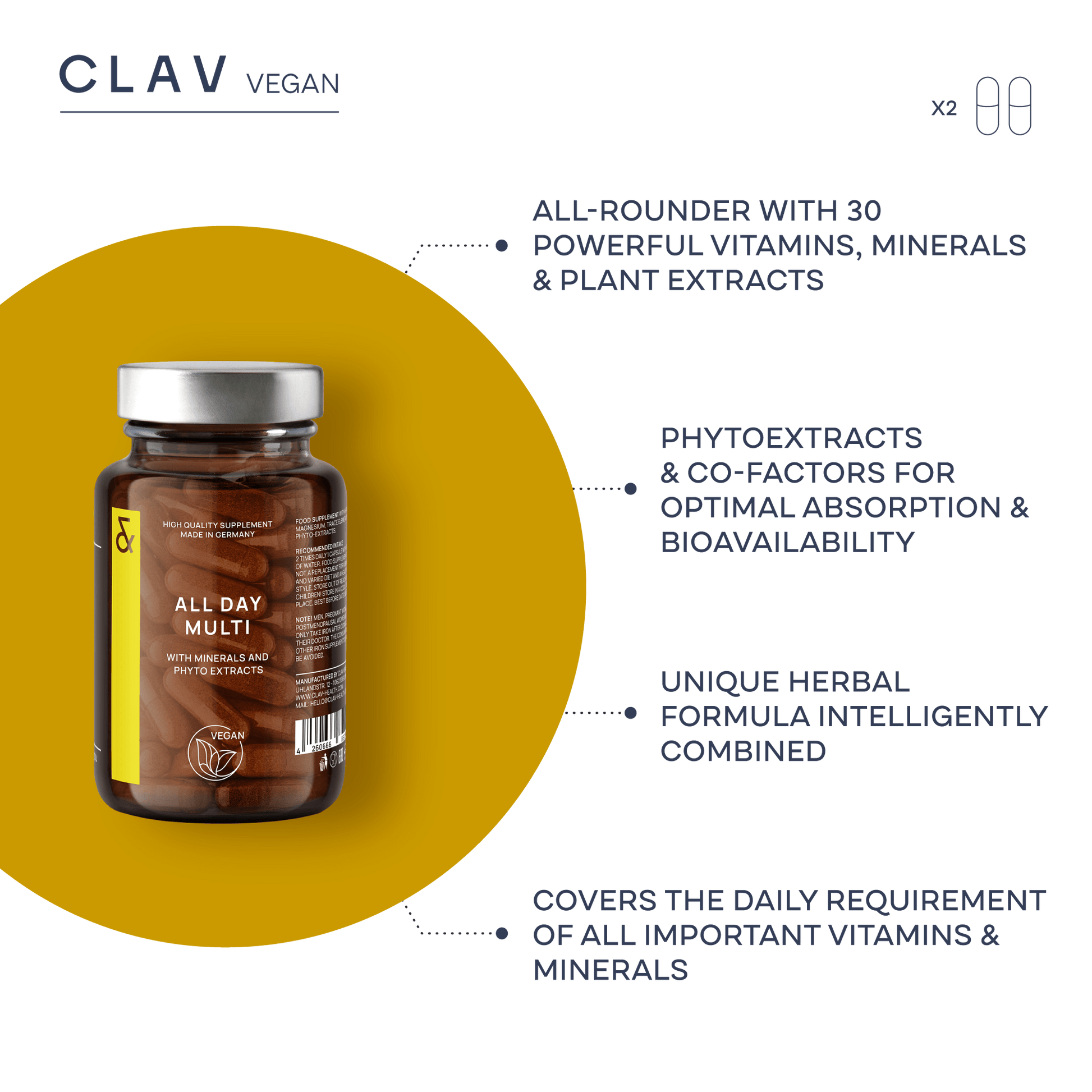 - Covers the daily requirement of the 20 most important vitamins & minerals