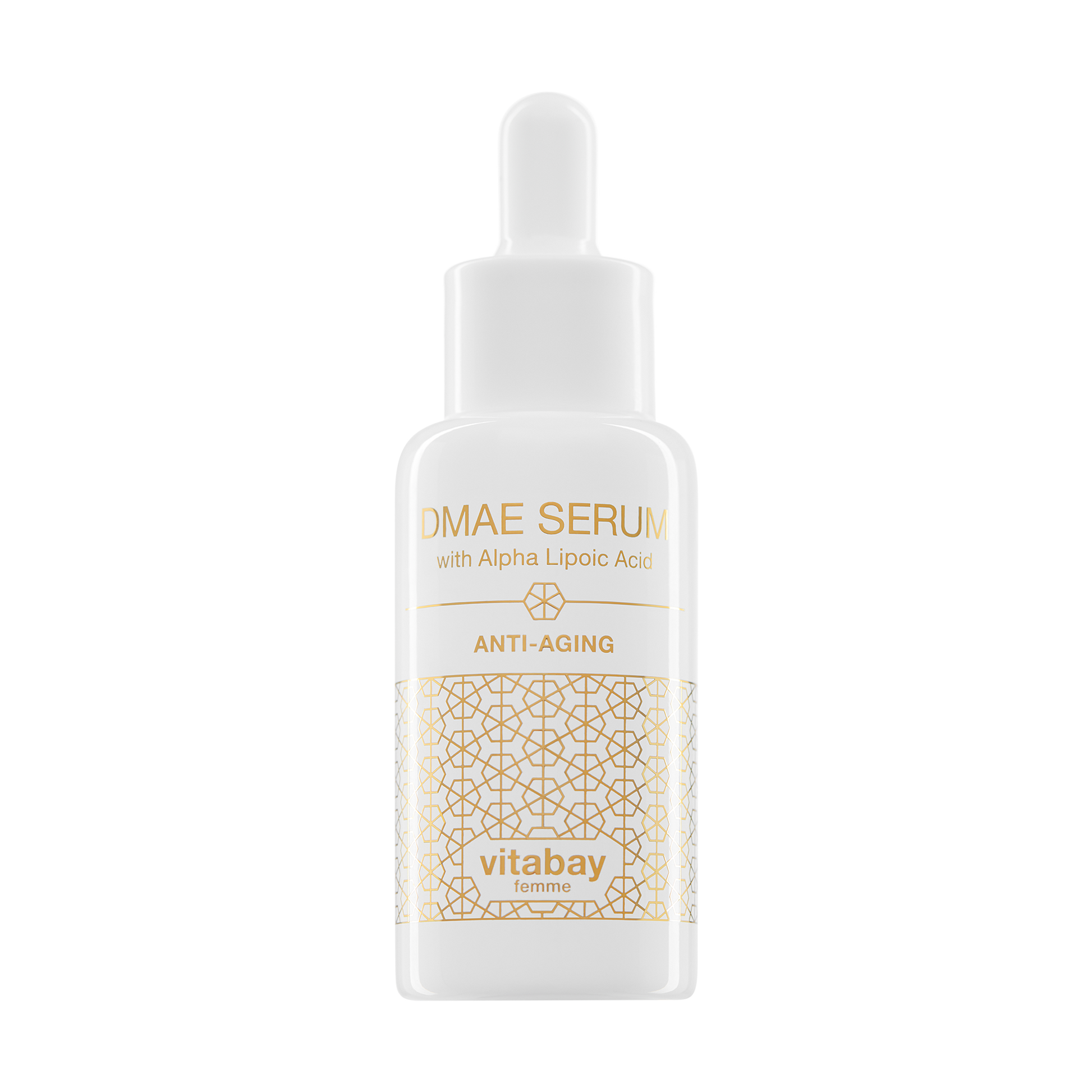 Discover the DMAE Serum. Thanks to the unique combination of DMAE, alpha-lipoic acid, Q10, aloe vera, and multi-vitamin ACE, your skin is intensively cared for and strengthened. With low and high molecular hyaluronic acid for optimal moisture supply. Treat yourself to the best for your skin! Say goodbye to signs of skin aging and welcome radiant vitality!