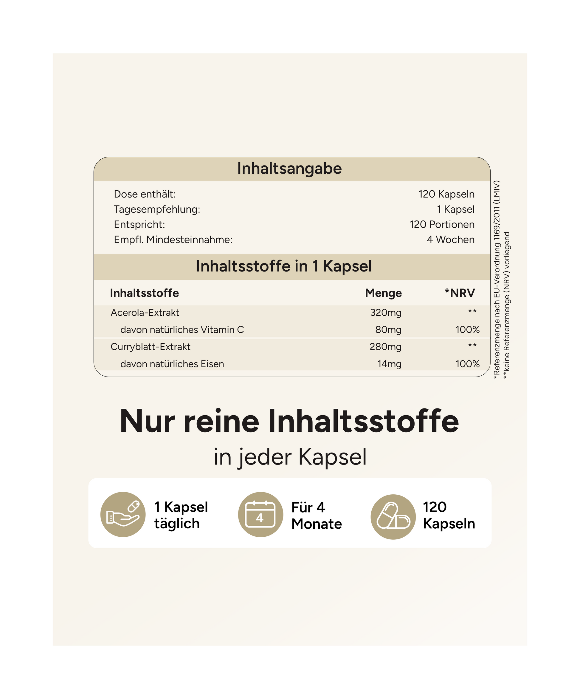 Eisen aus Curryblatt - mit Vitamin C aus Acerola