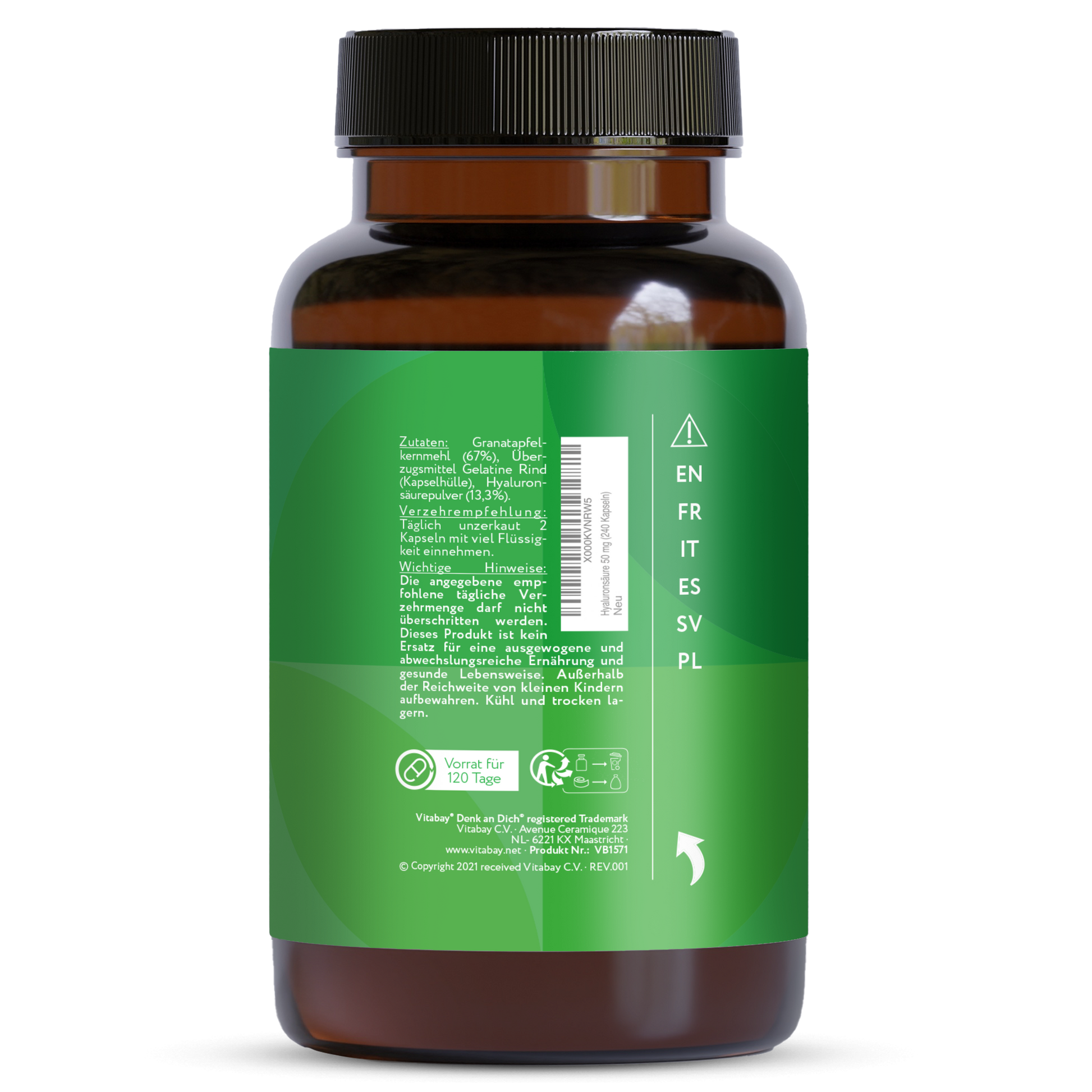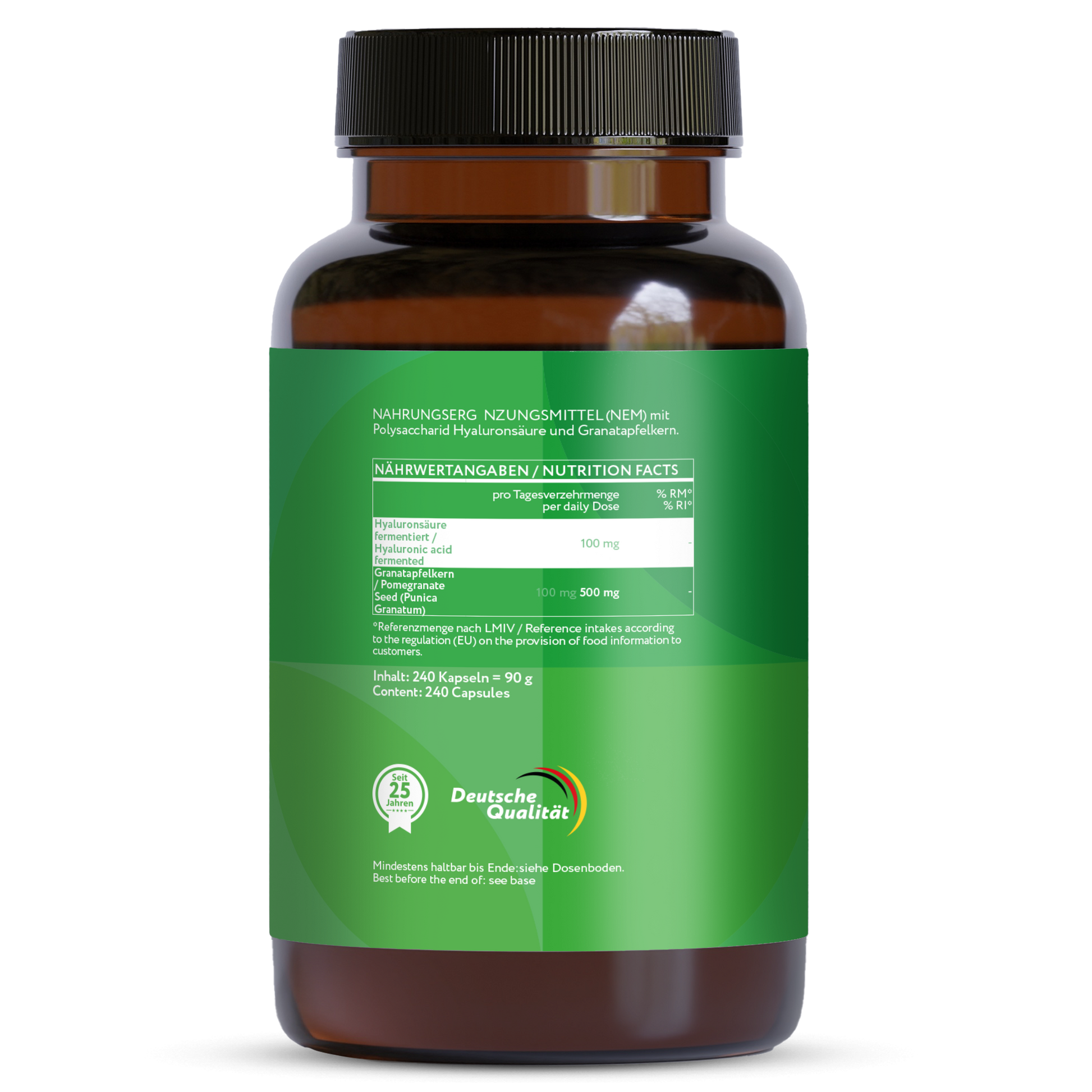 Hyaluronsäure fermentiert mit Granatapfelkern 250 mg - 240 Kapseln