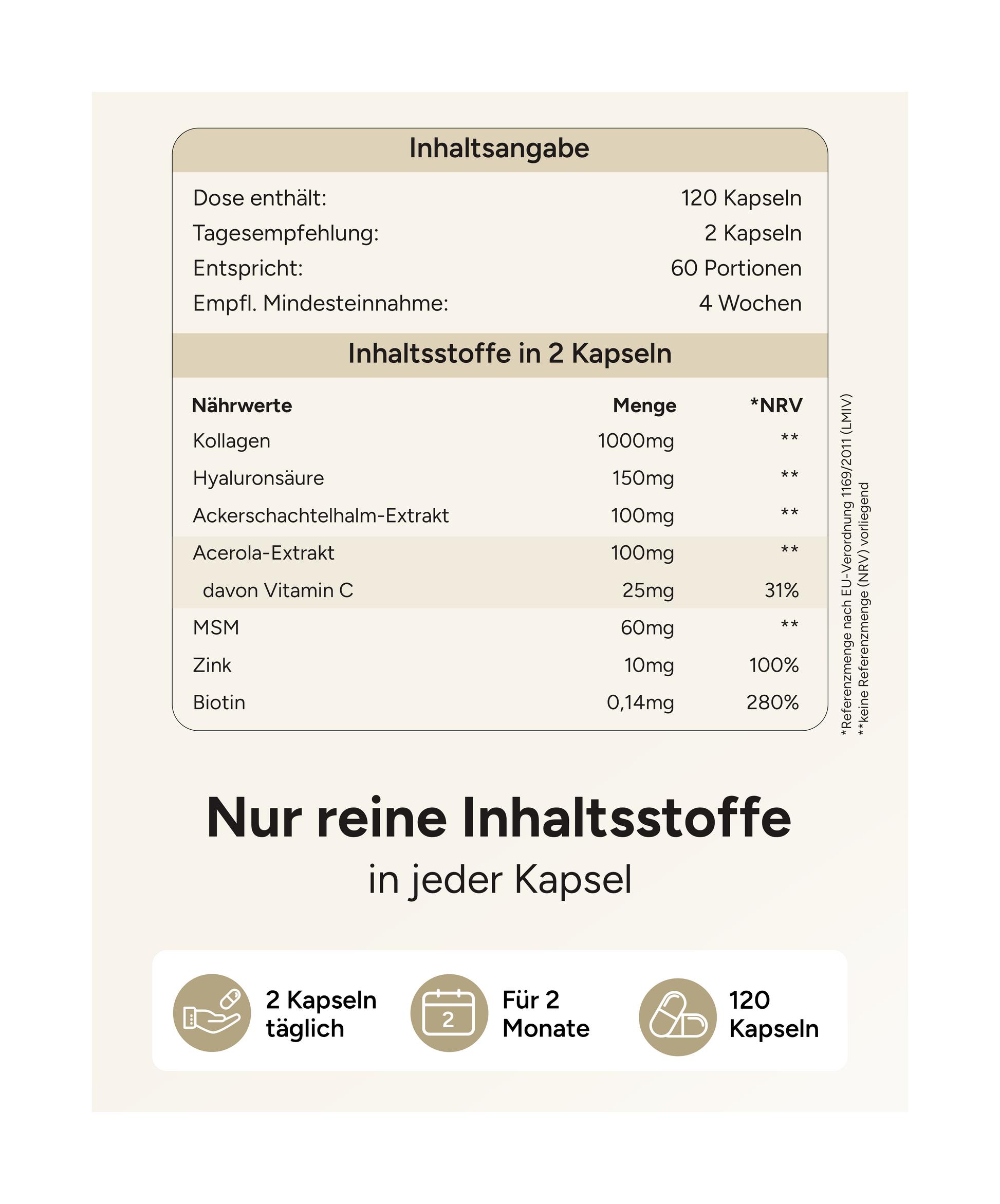 Kollagen, Hyaluron Komplex - mit Biotin Zink & Vitamin C