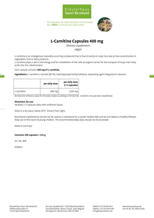 Sanct Bernhard L-Carnitine Capsules 400 mg