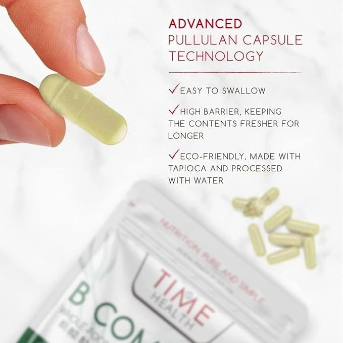 100% VEGAN WITH NO FILLERS, BINDERS OR ADDITIVES. Our B Complex is 100% vegan friendly. At Time Health we believe in clean nutrition which is why you won’t find any nasty stuff in our products including any fillers, binders or additives, unlike some of our competitors.