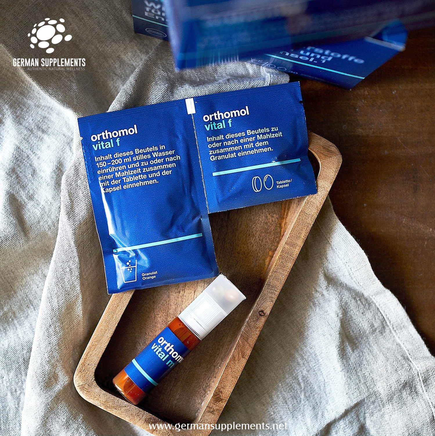 Orthomol Vital f is a food supplement. It contains important micronutrients such as B vitamins and magnesium that contribute to normal energy-yielding metabolism and normal functioning of the nervous system. With omega-3 fatty acids and calcium.